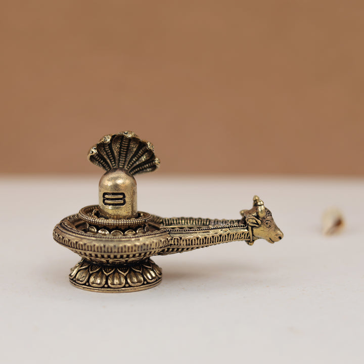 Antique Brass Shivling with nandi head in 2.5 Inch