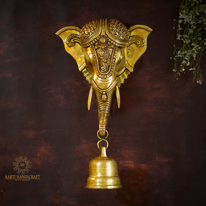 Elephant Wall Hanging Bell in Pure Brass For Home Decor/Puja Decor/Festive Decor | 9.5 Inch