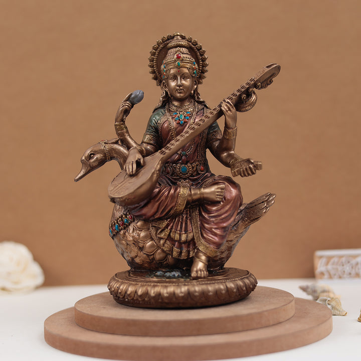 GODDESS SARASWATI RESIN IDOL DECORATIVE FIGURINE