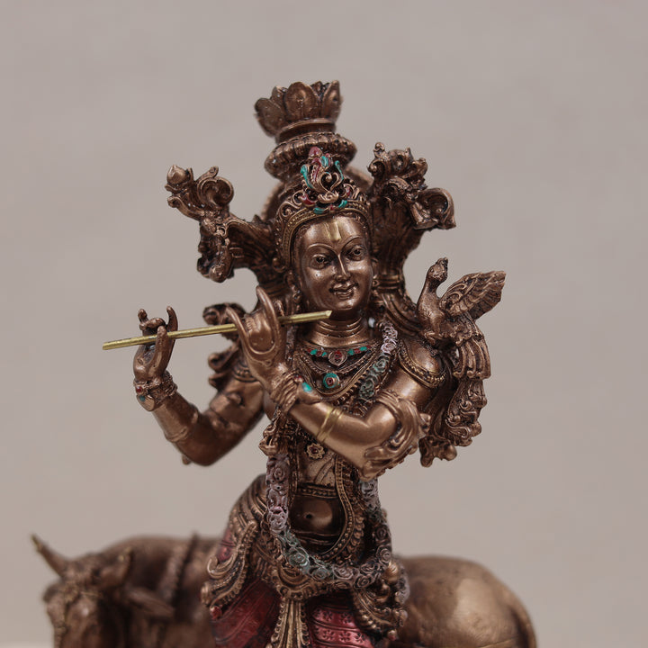 Spiritually Crafted Cow Krishna In Copper Finish (11 Inch/28 Cm)