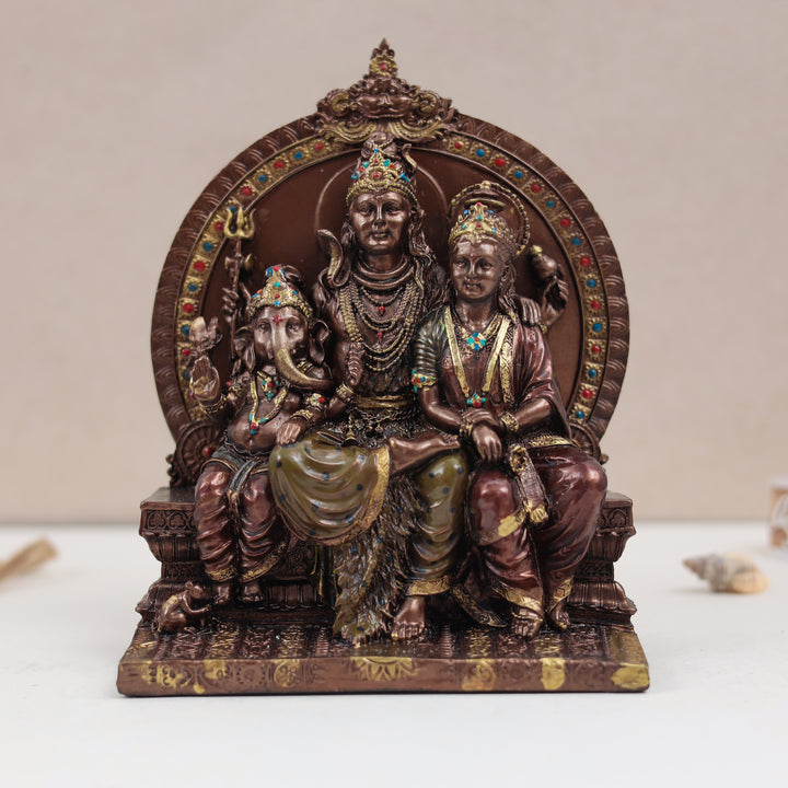Beautiful Shiva Family/Parivar In Copper Finish | 8 Inches