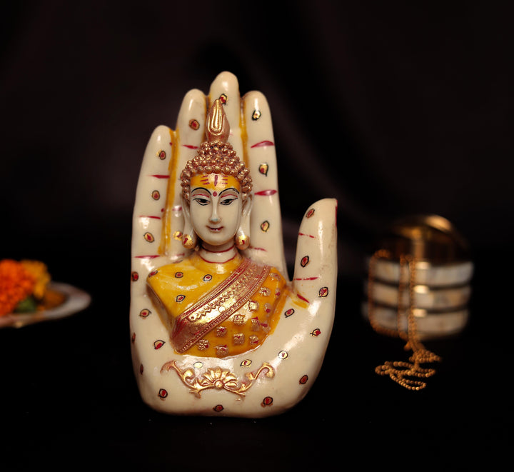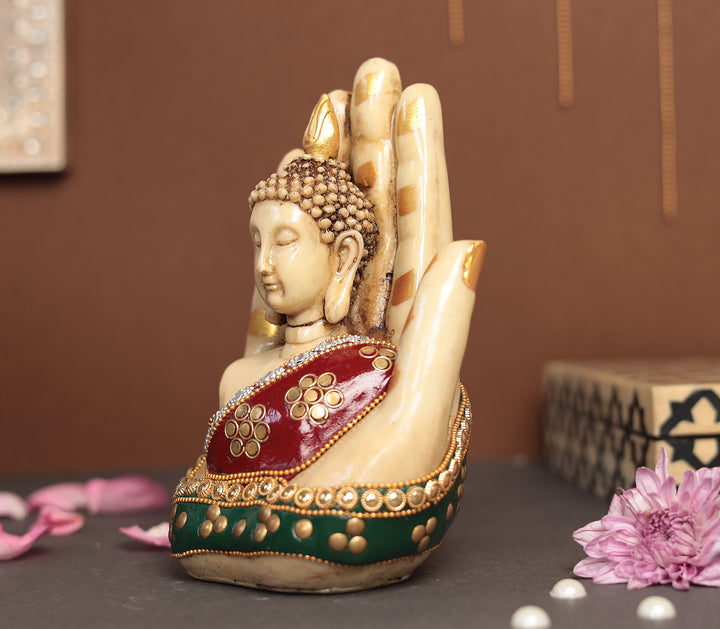 Superfine Palm Buddha With Gem Stone Work  | Resin (Marble Dust)
