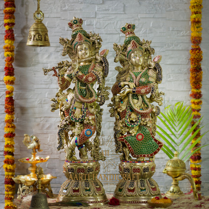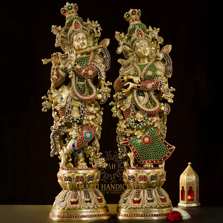 Mesmerising Brass Radha and Krishna Idol in 29 Inches