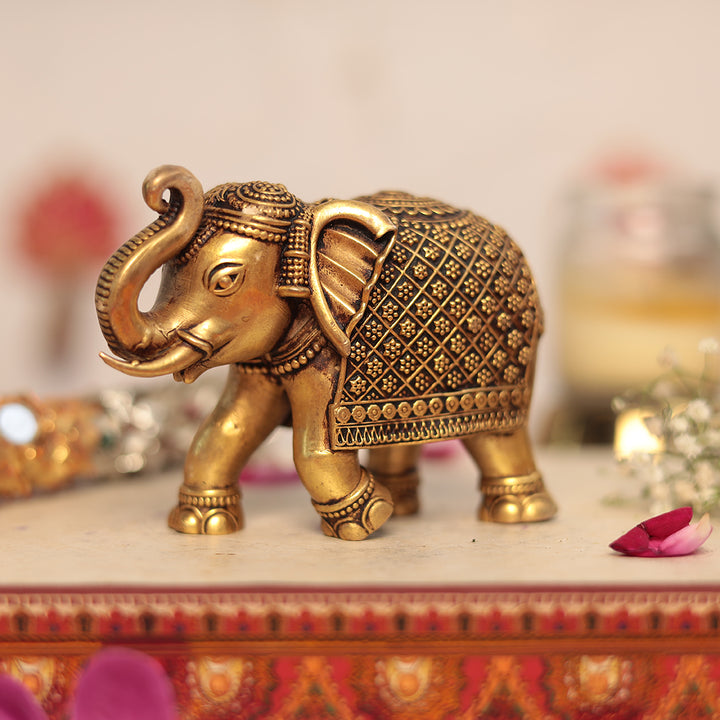 Brass Up Trunk Beautiful Carving Vastu Elephant In 2 & 3 Inches