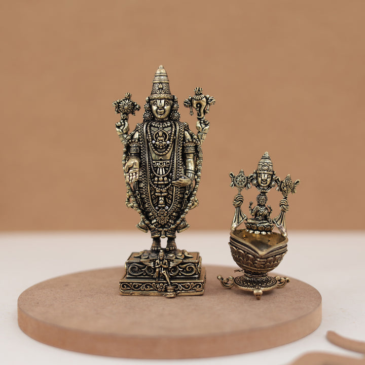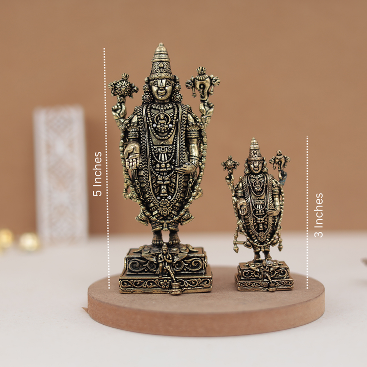 Antique Finish Pure Brass Tirupati Balaji Ido with  Garuda Base – 5 & 3 Inches