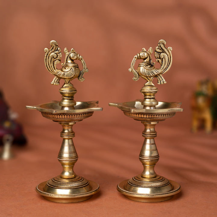 Superfine Brass Peacock Diya set For Diwali/Puja Decor/Gift In 8 Inch