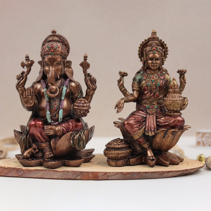 Copper Finish Lakshmi–Ganesh Lotus Idol Set – 9 Inch (Pair) Perfect for Diwali/Gift/Home Decor