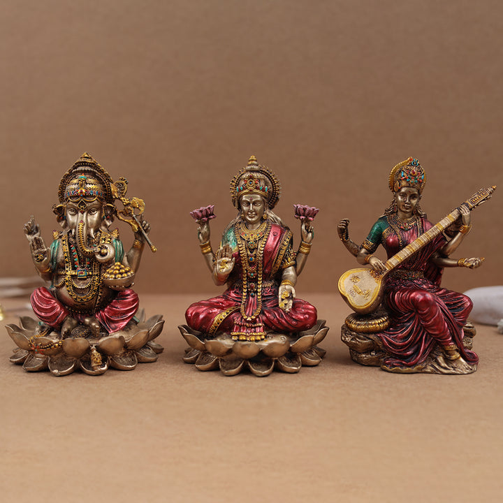 Brass Divine Trio Laksmi Ganesh Saraswati set In 2.8 Inch For Festive