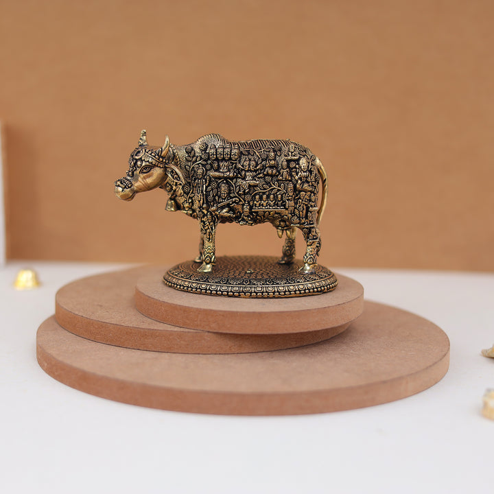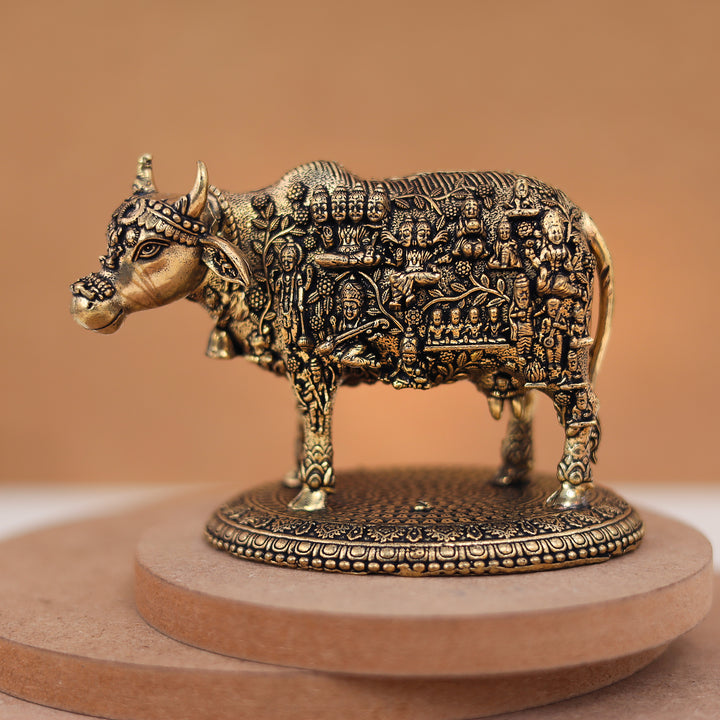 Divine Pure Brass Kamdhenu Cow with Deities/the celestial cow In 3.5 & 3 Inches, embody all gods and goddesses within her form