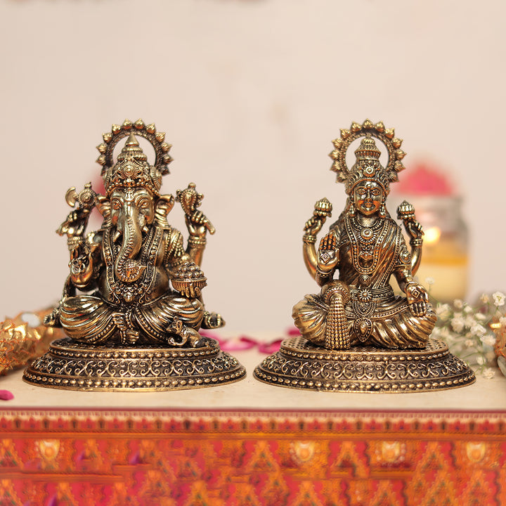 Brass Superfine Lakshmi and Ganesh Pair (4.3 Inches)