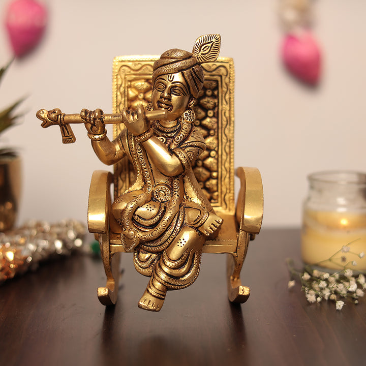 Brass Flute Krishna Sitting On Swinging Chair Idol In 6.5 Inch