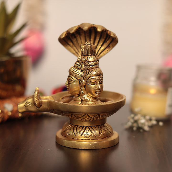 Brass Trimukhi Shivling with sheshnag in 5 Inch (13 Cm)