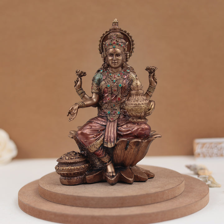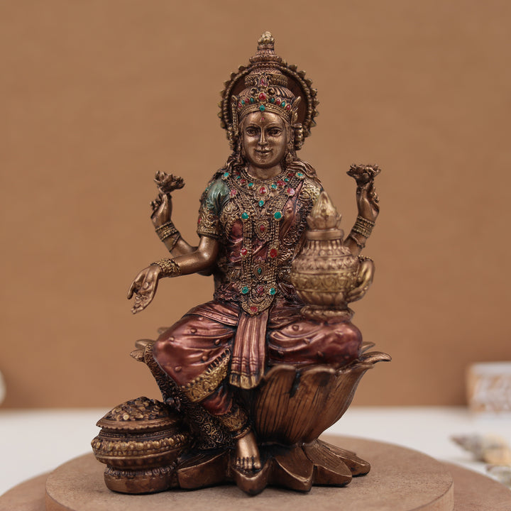 Goddess Shubh Lakshmi in 7 Inches in Copper Finish