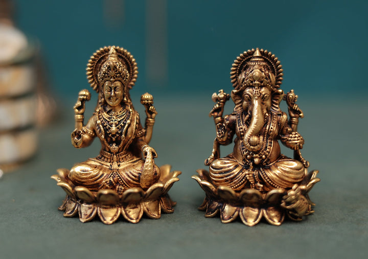 Superfine Antique Brass Lakshmi Ganesh Pair In 4 Inches