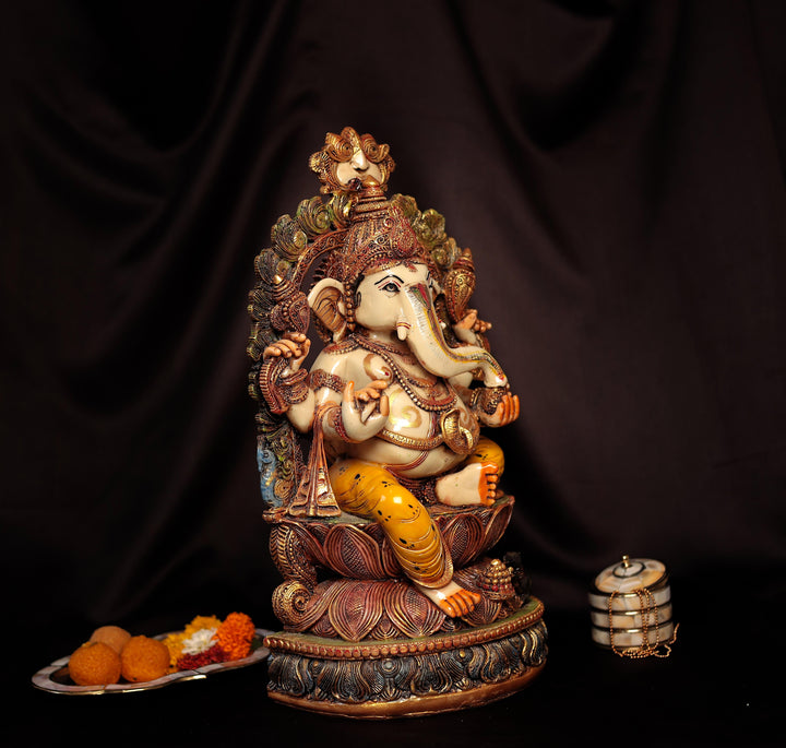 Exquisite Lord Ganesha Idol Sitting On Lotus In Big Size (17.5 Inches, 44.5 Cm)