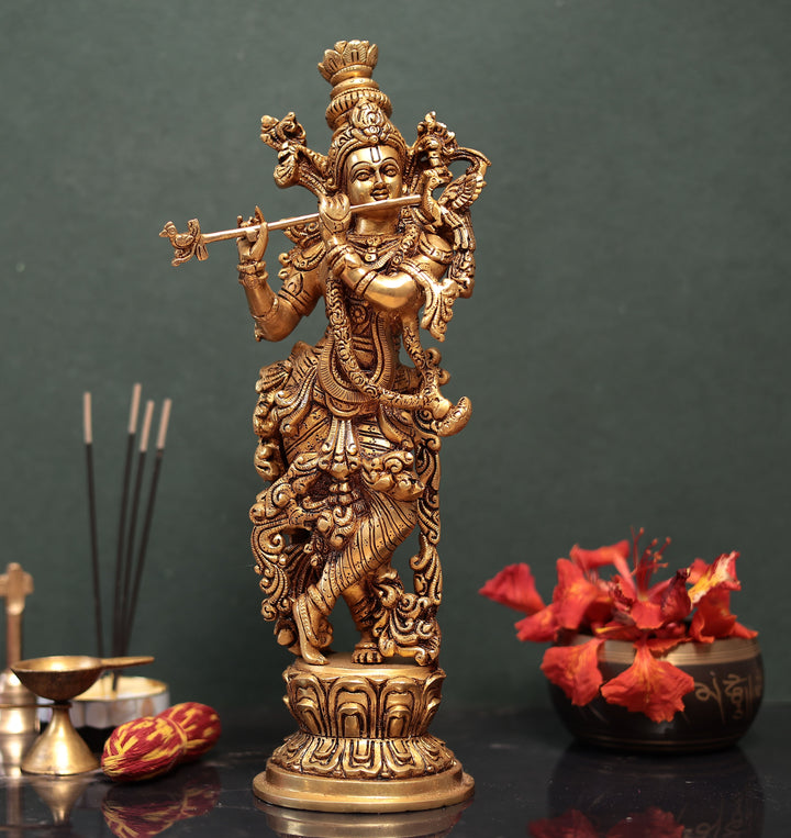 Lord Krishna Playing Flute In Brass In 15 Inches