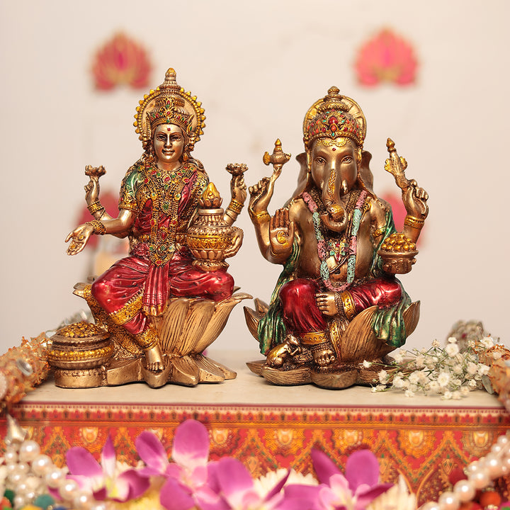 Ganesh and Lakshmi Ji Idol In 4 Inches In Multicolor