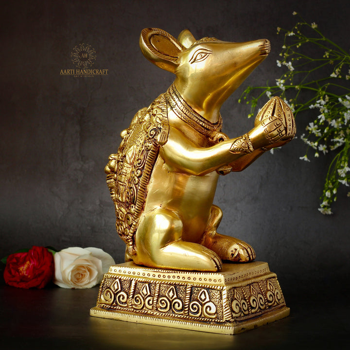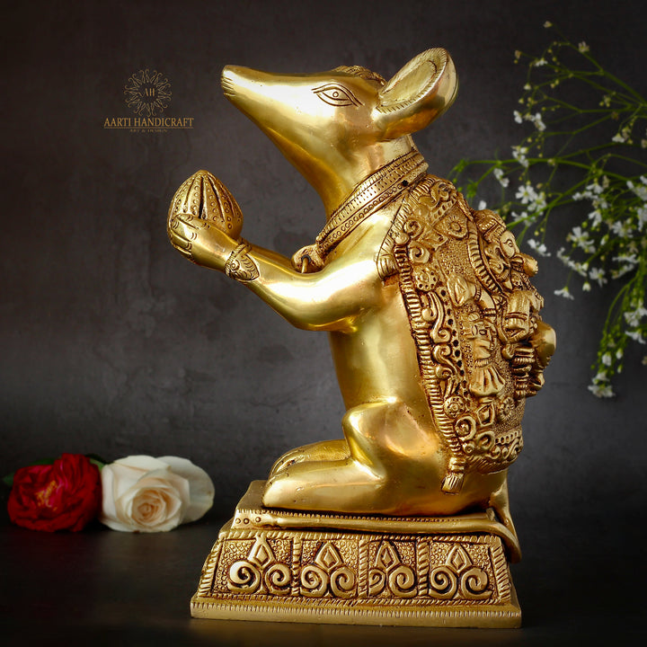 Ganesha's Mushakraj In Brass In 10"(25.4 Cm)