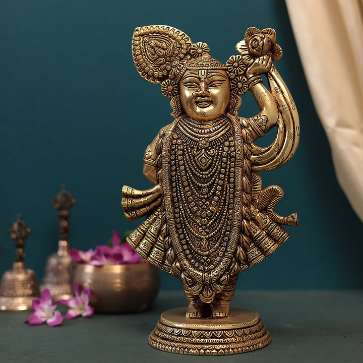 Brass Dwarkadhish or Shrinath ji Fine Finish Idol 14" (35.56 Cm)