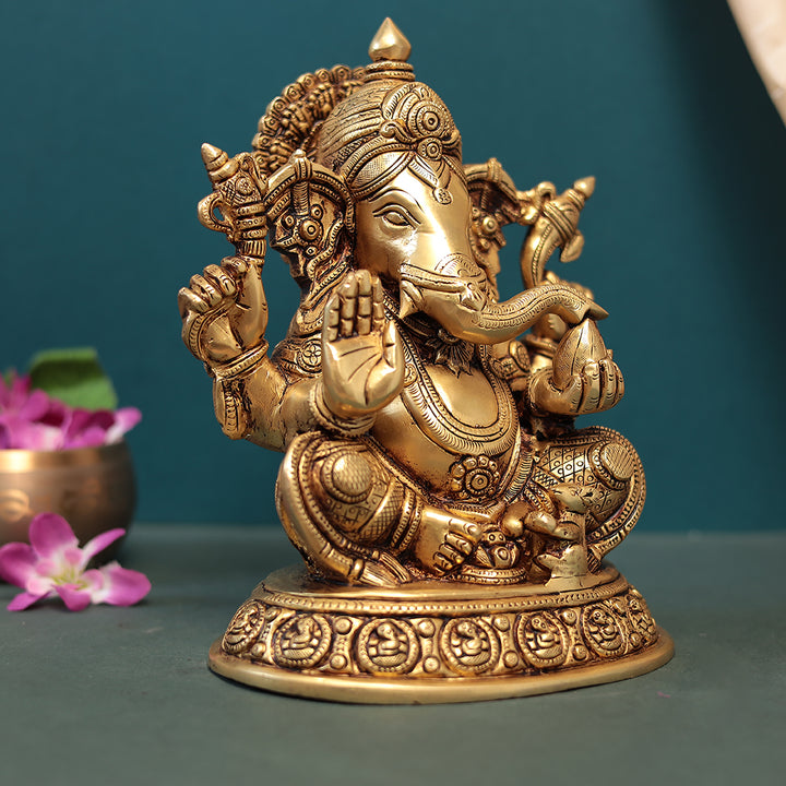 Brass Lord Ganesha Sitting On Singhasan in 8 Inches (20.32 Cm)