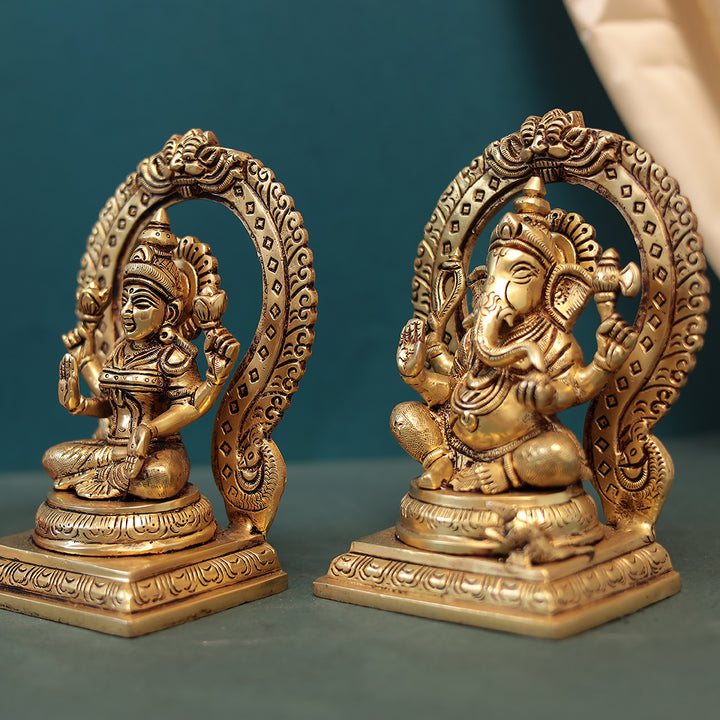 Brass Lakshmi/Laxmi and Ganesh Set In 7"
