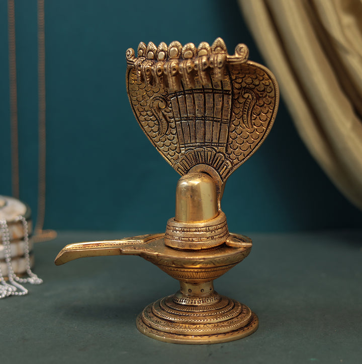 Brass Shivling With Saptmukhi Snake In 8 Inch (20.3 Cm)