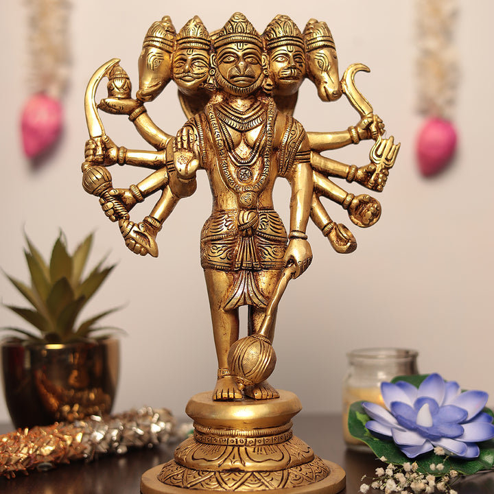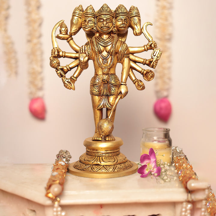 Brass Panchmukhi Hanuman Idol In 11 Inches