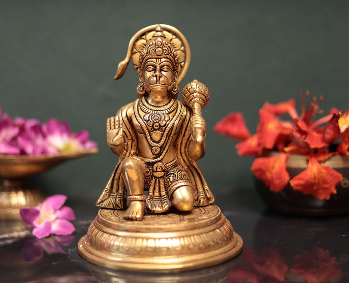 Brass Lord Hanuman Seated In Abhay Mudra In Brass 7 inches