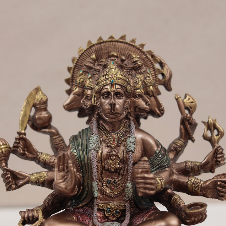 Seated Panchmukhi Hanuman Blessing Statue in Copper Finish | 8 Inches