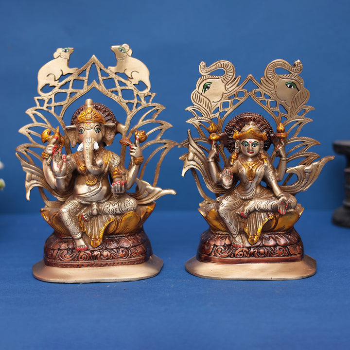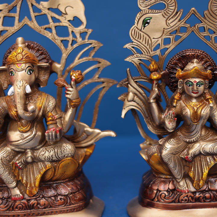 Brass Ganesha and Lakshmi Idol Set 9" Inch