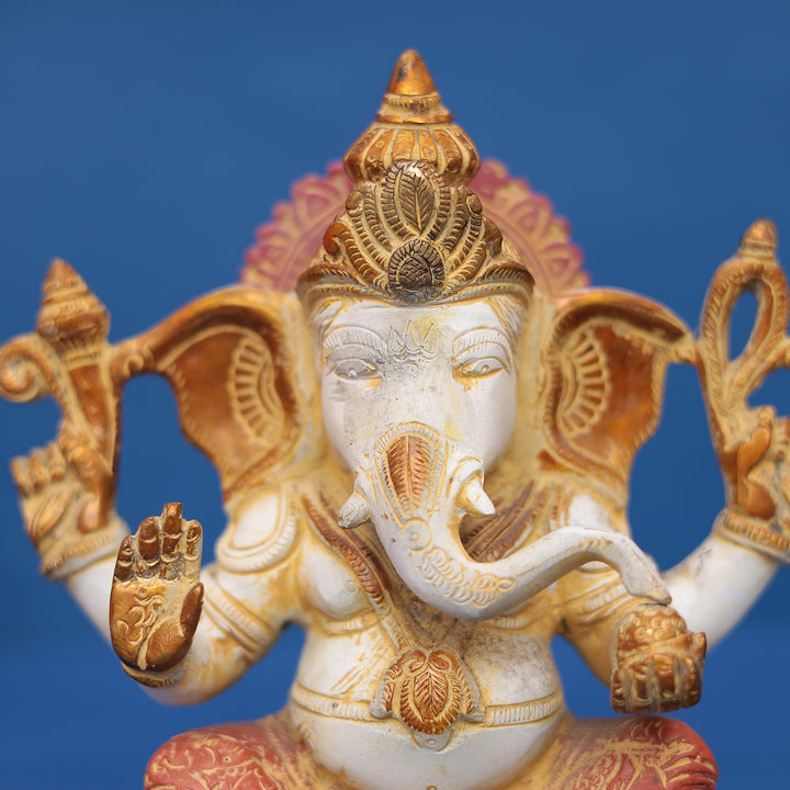 Lord Ganesha Idol with Ornate Prabhavali – In Brass 11" INCH