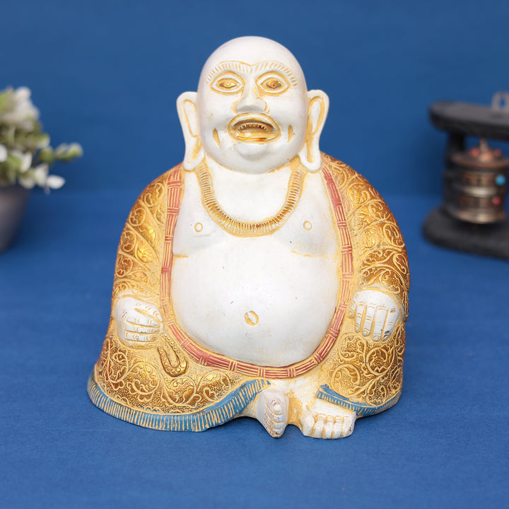 Laughing Buddha Murti – Symbol of Good Luck, Happiness & Prosperity (Brass Finish) 9" INCH