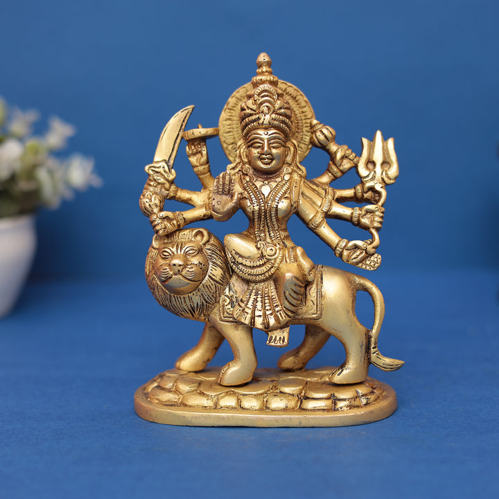 Pure Brass Goddess Durga Idol on Lion 7" INCH
